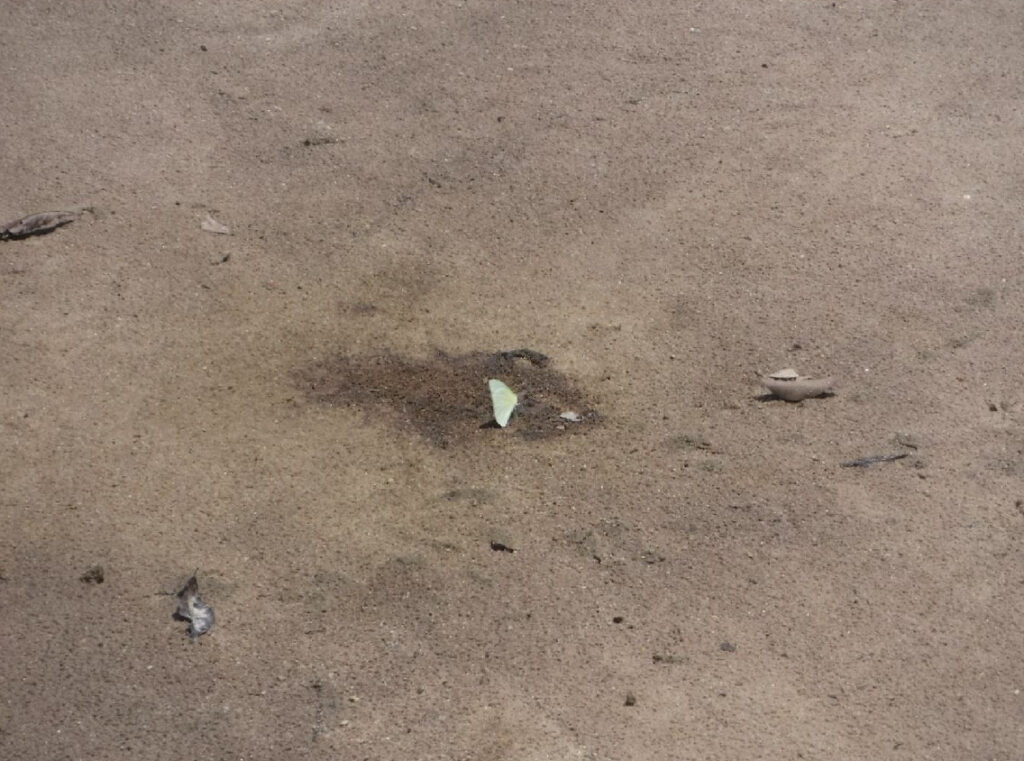 Brightly colored yellow, as well as lime green butterflies, demonstrating the exploitation of every mineral or food source nature can think of even from pee & poop