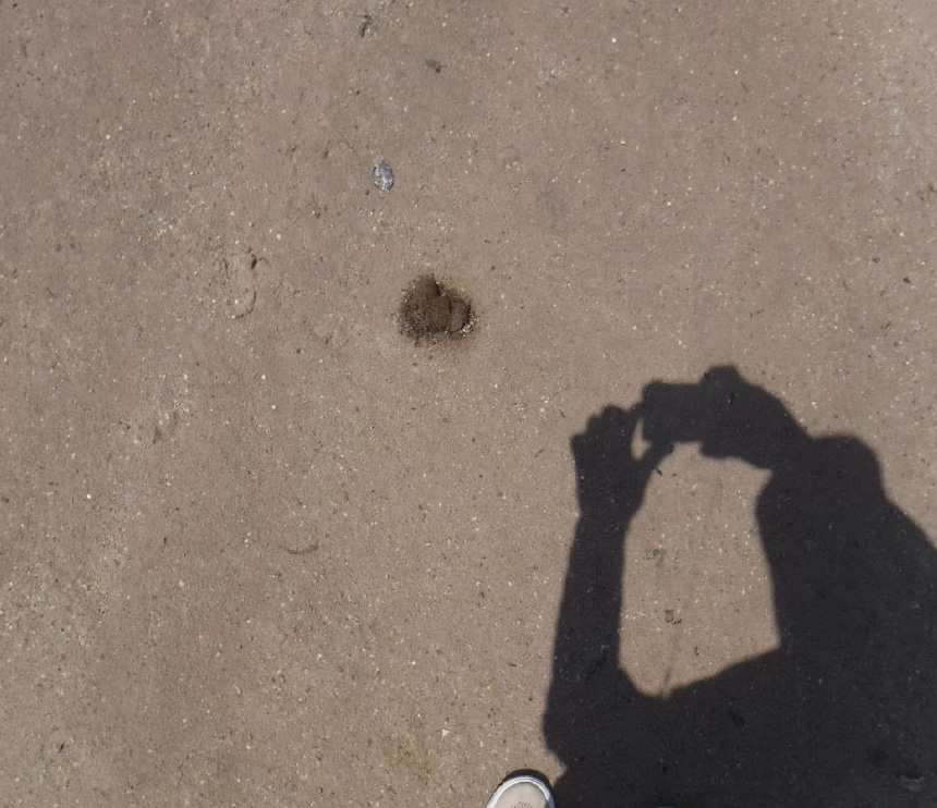 A fresh urine spot, there should be lots of salt here